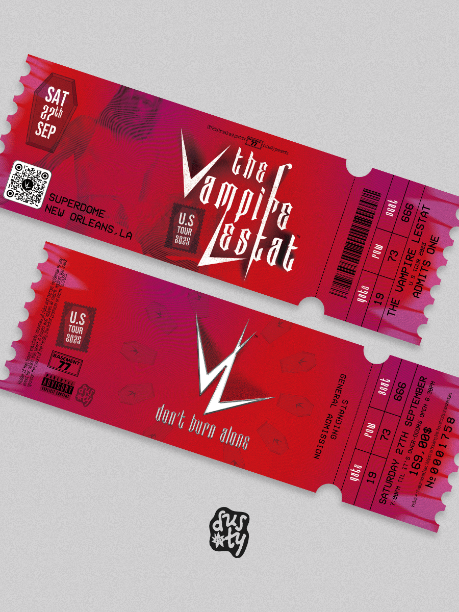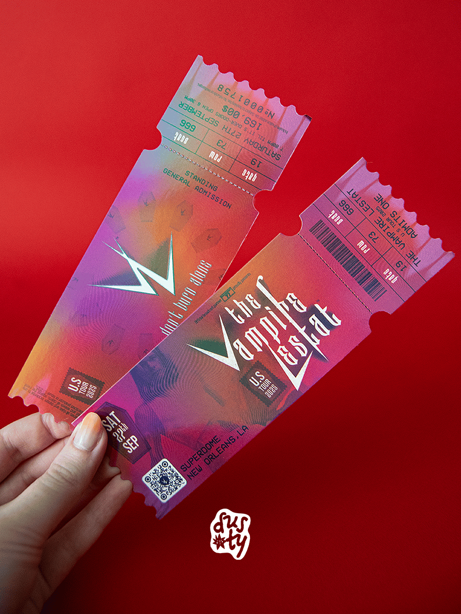 Fake ticket for The Vampire Lestat concert with a tearable coupon.